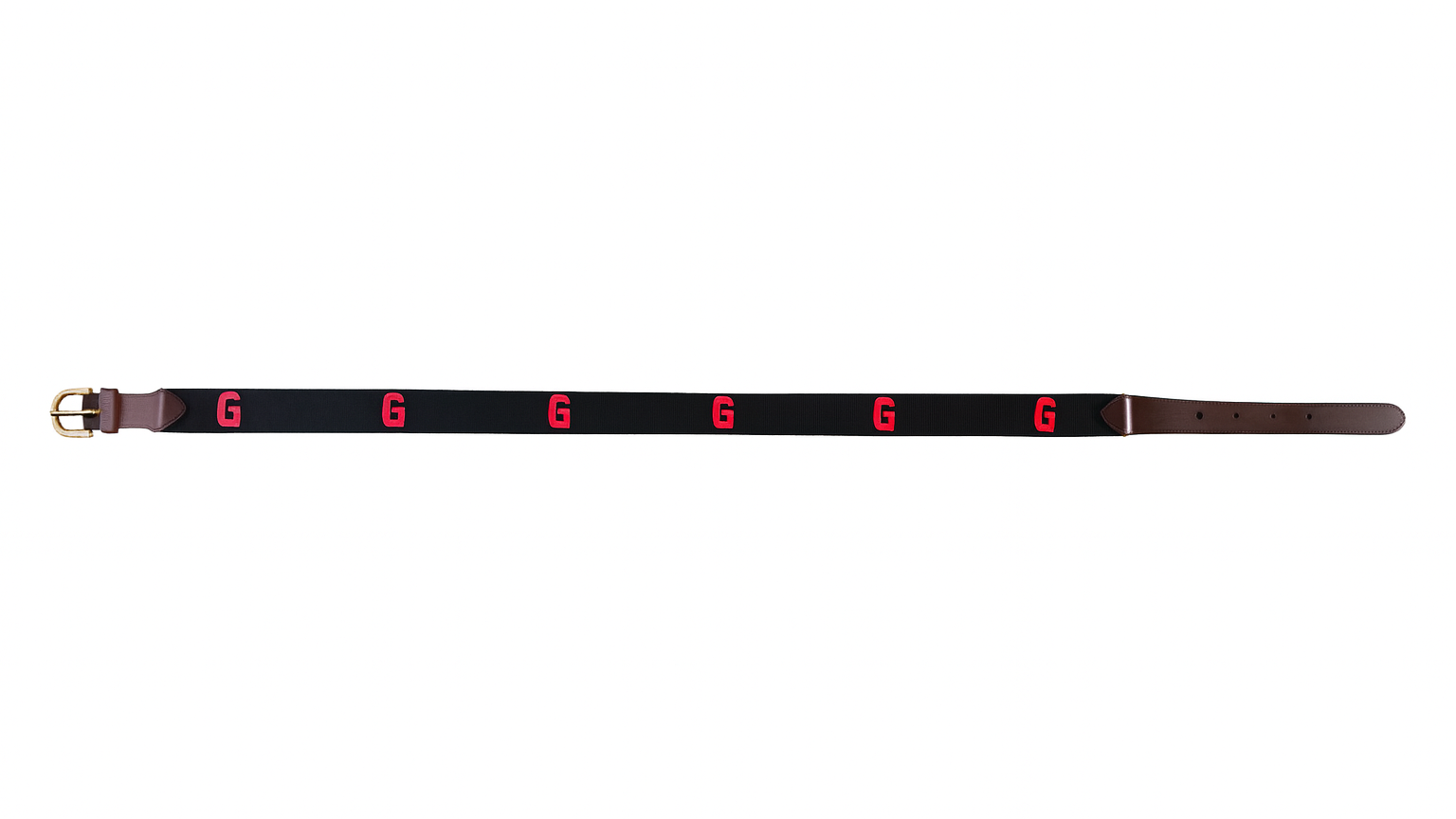 Show your Georgia pride with this classic black needlepoint belt featuring the iconic red Block G. Hand-stitched with premium needlepoint and finished with full-grain brown leather, this belt is built for comfort, durability, and timeless gameday style.